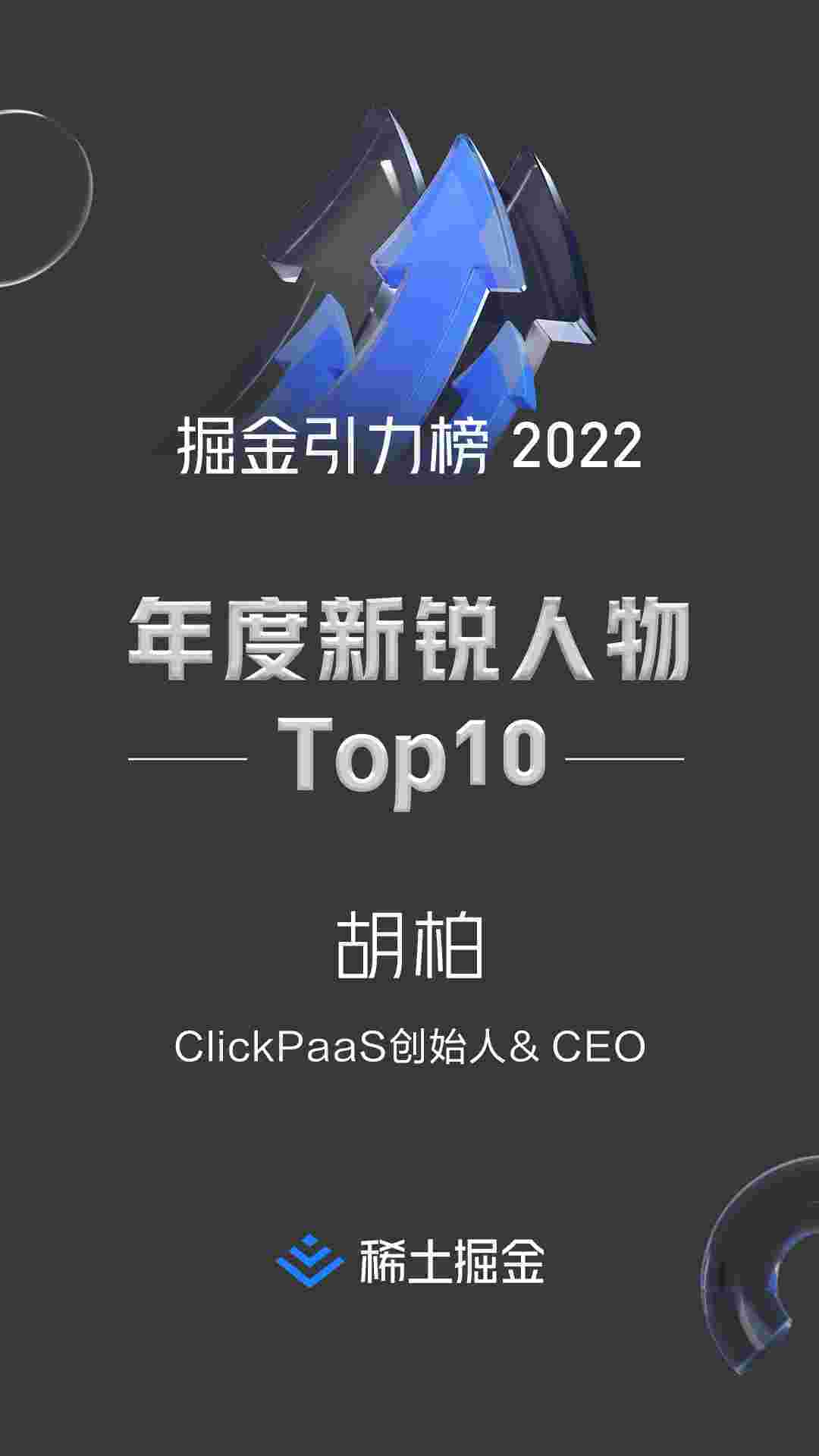 2022年1月6日,,稀土掘金社区第一届「掘金未来大会」成功举办,,,会上发布了“2022 稀土掘金引力榜 年度新锐人物”榜单,,上海爱湃斯科技有限公司(简称美团钱包商家版)创始人及CEO胡柏实力入选年度新锐人物TOP 10。。