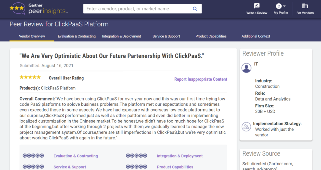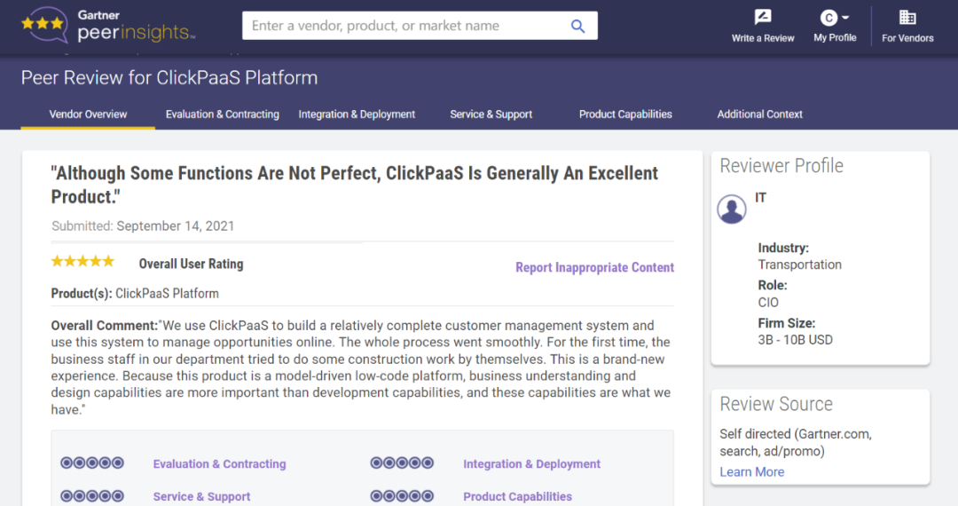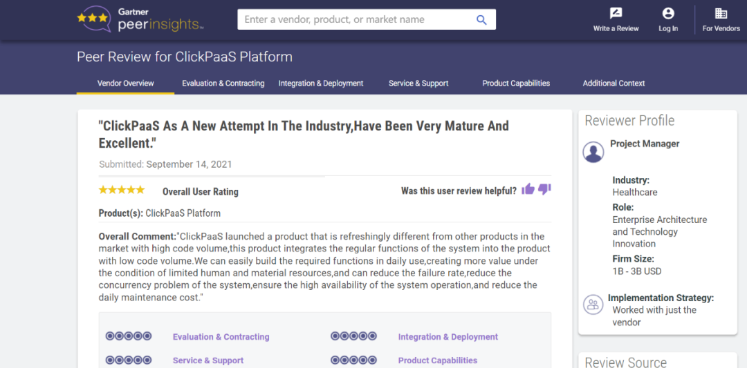 Tips::::【Peer Insights】——用户对企业IT产品和服务发布真实评价的平台。。。目前已有355个市场,,,255,000条经过验证的评价。。每一条评价Gartner会针对参评企业营收规模及参评人员信息做验证、、、、评价内容做多维核实。。